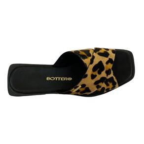 Sandália rasteira em couro poney com estampa animal print de leopardo. Com design moderno e toque de sofisticação, o modelo conta com gáspea composta por tiras largas transpassadas sobre o peito do pé, oferecendo firmeza e estilo. O salto rasteiro em acabamento preto possui 2 cm de altura, ideal para quem busca conforto no dia a dia sem abrir mão da elegância. O calce é prático e funcional, com palmilha macia que garante maior conforto ao caminhar. O logo da marca aparece em dourado na palmilha e também em um pin metálico aplicado na lateral externa, conferindo um detalhe delicado e exclusivo à peça. Com peso aproximado de 326 g (par no tamanho 36), é uma sandália leve, versátil e perfeita para composições descontraídas — do casual ao urbano chic. Garanta já a sua.