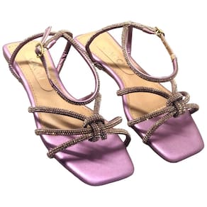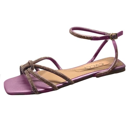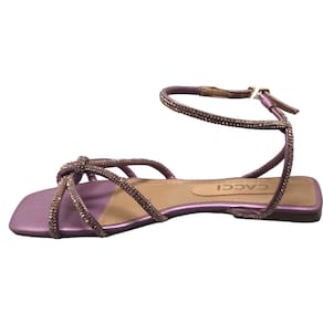 Sandália Rasteira Cacci com Strass Conforto - Lilás - 36