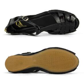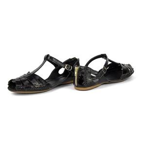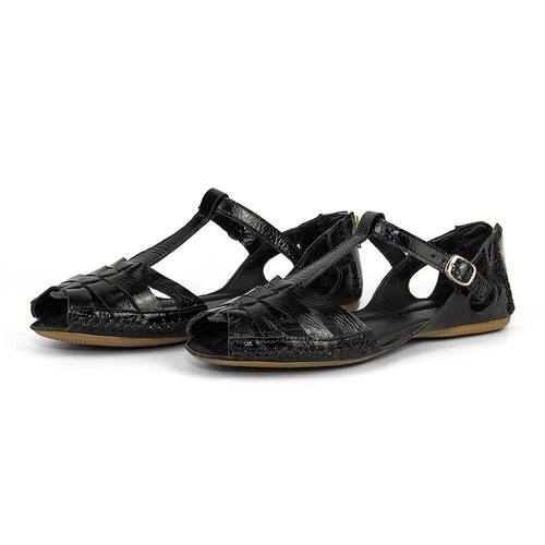 Sandalia Rasteira Conforto Feminina Couro Verniz Salto Baixo Fechamento Ziper e Fivela - 35 - Preto