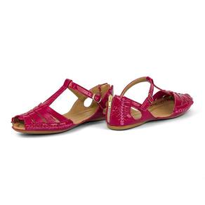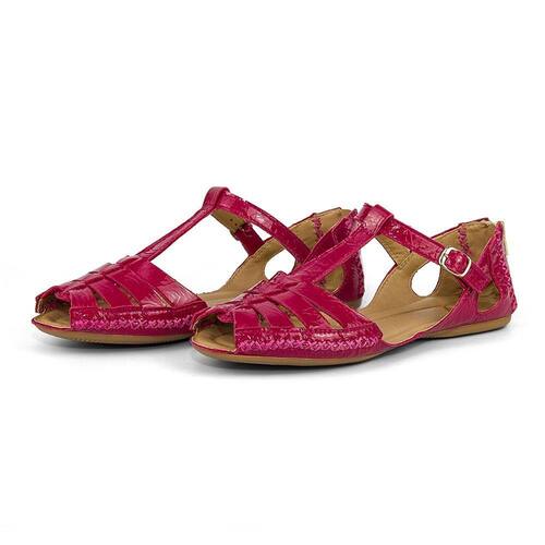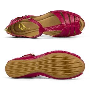 Sandalia Rasteira Conforto Feminina Couro Verniz Salto Baixo Fechamento Ziper e Fivela - 35 - Rosa