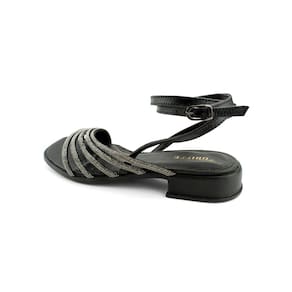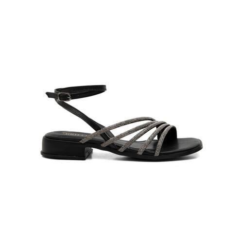 Sandália Rasteira Couro Feminina Strass Carol Preto - 38 - Preto