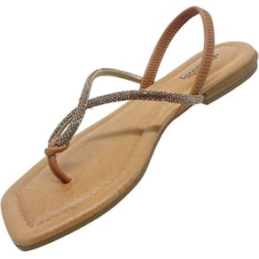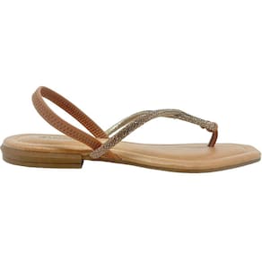 Nome: Sandália Rasteira Feminina Casual Dia a Dia com Strass Bico Quadrado Mississipi Q9993