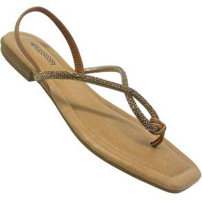 Sandália Rasteira Feminina Casual Dia a Dia com Strass Bico Quadrado Mississipi Q9993