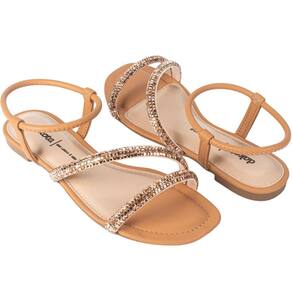 Nome: Sandália Rasteira Feminina Casual Dia a Dia Tiras com Pedraria Dakota Y6782