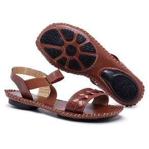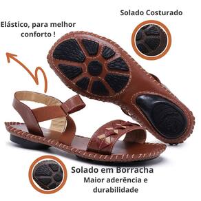 Ficha Técnica (Sem margem para dúvidas): -- Modelo: Sandália Rasteira Conforto / Rústica -- Material do Cabedal: Couro Verdadeiro -- Cor: Havana -- Fechamento: Tira traseira com Elástico Reforçado -- Solado: Borracha (Antiderrapante e Flexível) -- Altura do Solado: Aproximadamente 1,5 cm. -- Indicação de Uso: Dia a dia, passeios, casual, estilo boho.