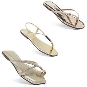 O kit 3 Pares de Sandália Rasteira Florear foi desenvolvido para mulheres que prezam por um visual moderno e delicado. Confeccionadas com material de alta qualidade, possuem solado em PVC antiderrapante garantindo segurança em cada passo, enquanto a palmilha macia realça o conforto ao longo do dia. Os detalhes com apliques e strass garantem um toque incrível e moderno ao calçado. Combine com suas peças favoritas, do básico ou com saias e vestidos da estação.