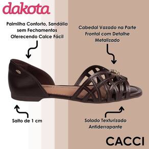 A Sandália Dakota é perfeita para quem busca elegância e conforto em um único modelo. Com design moderno e acabamento impecável, ela oferece um calce fácil, ideal para quem valoriza praticidade no dia a dia. Seu cabedal vazado na parte frontal, com detalhe metalizado delicado, traz um toque sofisticado e versátil, combinando com diferentes estilos e ocasiões.