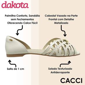 A Sandália Dakota é perfeita para quem busca elegância e conforto em um único modelo. Com design moderno e acabamento impecável, ela oferece um calce fácil, ideal para quem valoriza praticidade no dia a dia. Seu cabedal vazado na parte frontal, com detalhe metalizado delicado, traz um toque sofisticado e versátil, combinando com diferentes estilos e ocasiões.