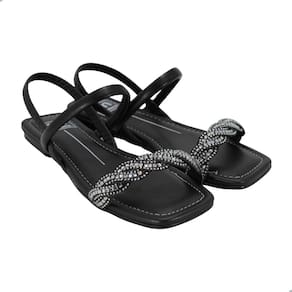 Sandália Rasteira Feminina Moleca Elas Sthech Black Diamond - 40 - Preto