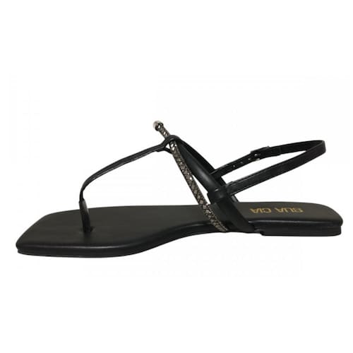 Sandália Sua Cia Rasteira Strass Preto. Confeccionada com materiais de alta qualidade, possui tira dupla, uma delas forrada com strass brilhantes, bico arredondado. Possui também uma tira adicional no calcanhar com fechamento em fivela metálica para mais segurança. Solado é emborrachado com frisos antiderrapantes e salto baixo. Perfeita para compor os seus looks!