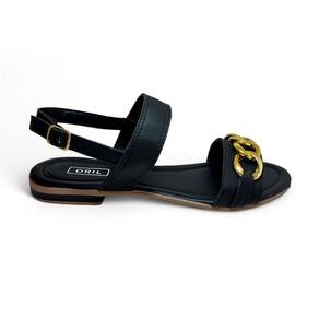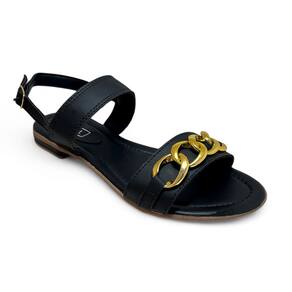 Sandalia Rasteira Feminina Tira com Corrente Dourada - 39 - Preto