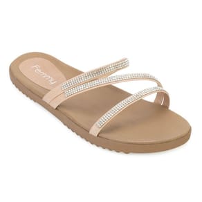 Nome: Sandália Rasteira Femmy FM23-802. Gênero: Feminino. Indicado para: Dia a dia. Estilo da Peça: Casual. Material Externo: Alternativo. Detalhe: Tiras com aplicações de pedras strass. Palmilha: Borracha texturizada. Solado: Borracha antiderrapante. Peso do Produto: 687 g (o peso varia de acordo com a numeração). Garantia do Fabricante: Contra defeito de fabricação. Origem: Nacional. Código Produto: 02040730. Marca: Femmy. Marca: Femmy