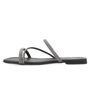 Conforto e estilo se unem na Sandália Rasteira Lady Queen! Confeccionada em material alternativo de alta qualidade, ela possui tiras finas decoradas com aplicações de strass, proporcionando um toque de sofisticação ao seu look. A palmilha forrada e macia garante o máximo de conforto durante todo o dia, enquanto o solado com frisos antiderrapantes oferece segurança e estabilidade a cada passo. Ideal para quem busca elegância e bem-estar em qualquer ocasião.