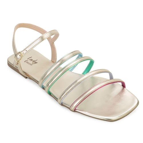 Nome: Sandália Rasteira Lady Queen AN23-19313. Gênero: Feminino. Indicado Para: Dia a dia - Moda Casual. Estilo da Peça: Lisa. Ocasião: Casual. Material Externo: Alternativo. Detalhe: Tiras finas metalizadas e coloridas. Ajuste: Fivela. Palmilha: Forrada e macia. Tipo de Solado: Rasteiro. Solado: Borracha antiderrapante. Peso do Produto: 648 g (o peso varia de acordo com a numeração). Garantia do Fabricante: Contra defeito de fabricação. Origem: Nacional. Código Produto: 02430435. Marca: Lady Queen. Ean: 7890010243541
