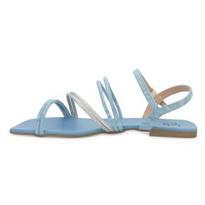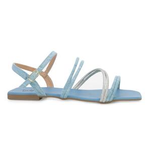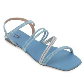 Nome: Sandália Rasteira Lady Queen AN23-19313. Gênero: Feminino. Indicado Para: Dia a dia - Casual. Estilo da Peça: Lisa. Ocasião: Casual. Material Externo: Jeans. Detalhe: Tiras finas com brilhos. Ajuste: Fivela. Palmilha: Forrada e macia. Tipo de Solado: Rasteiro. Solado: Borracha antiderrapante. Peso do Produto: 586 g (o peso varia de acordo com a numeração). Garantia do Fabricante: Contra defeito de fabricação. Origem: Nacional. Código Produto: 02430433. Marca: Lady Queen. Ean: 7890010243350