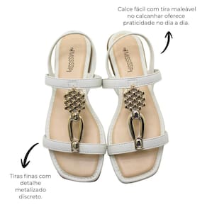 Com salto baixo de 2,0 cm e solado leve, a Sandália Rasteira Mississipi Feminino Gelo proporciona conforto absoluto para caminhadas prolongadas. Ideal para combinar com shorts, vestidos, saias ou peças mais elaboradas, ela é perfeita para acompanhar você em todas as ocasiões, do trabalho ao lazer, sempre com estilo e suavidade.