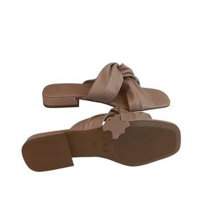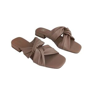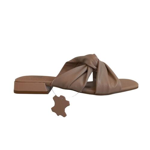Sandália Rasteira Slide QR Shoes Nude Tiras Largas Nó Conforto