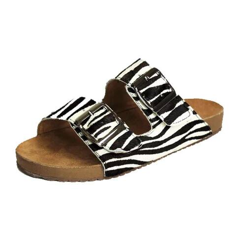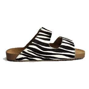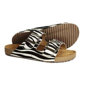 Sandalia Rasteira Papete Estampa Zebra Feminina Fivela Dupla Regulagem Sola TR Confortavel - 36 - Preto