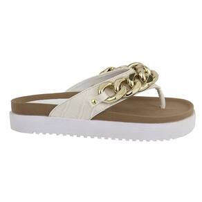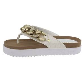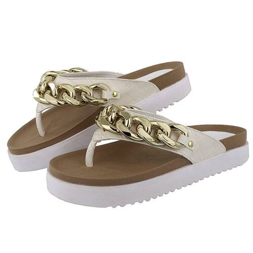 Sandalia Rasteira Papete Feminina Solado Tratorado Detalhe Corrente Elos Frontal Anatomica - 38 - Bege
