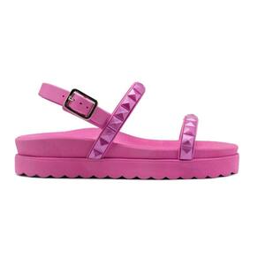 Sandalia Rasteira Papete Piramide Feminina Com Fivela Solado Microexpandido Confortavel Verao Macia - 34 - Rosa
