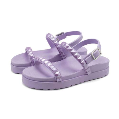 Sandalia Rasteira Papete Piramide Feminina Com Fivela Solado Microexpandido Confortavel Verao Macia - 38 - Lilás