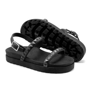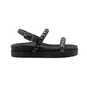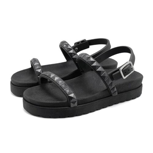 Sandalia Rasteira Papete Piramide Feminina Com Fivela Solado Microexpandido Confortavel Verao Macia - 38 - Preto