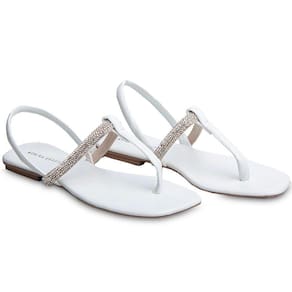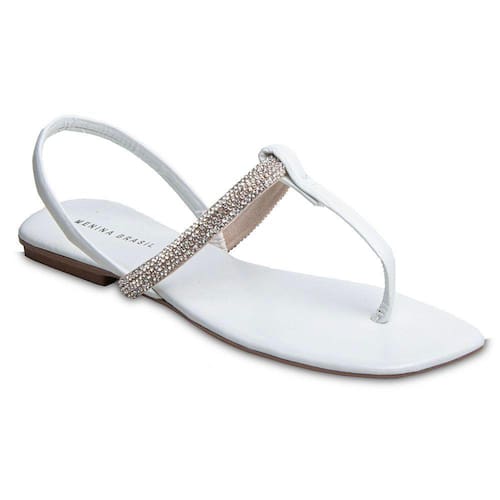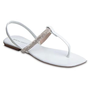 Sandália Rasteira Paula com Strass Branca 2591 - Branco - 35