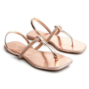 Sandália Rasteira Paula com Strass Bronze 2593 - 34 - Marrom