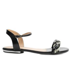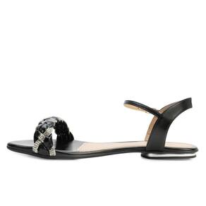 Nome: Sandália Rasteira Sense Fit VA24-7267A. Gênero: Feminino. Indicado Para: Moda-Dia a dia. Estilo da Peça: Casual. Ocasião: Dia a dia. Material Externo: Alternativo. Fechamento: Fivela. Detalhe: Tira trançada com aplicações de strass e solado com friso metálico. Palmilha: Forrada e costurada. Solado: Borracha com frisos. Tipo de Salto: Rasteiro. Peso do Produto: 631 g (o peso varia de acordo com a numeração). Garantia do Fabricante: Contra defeito de fabricação. Origem: Nacional. Código Produto: 02060466. Marca: Sense Fit.