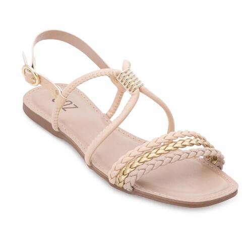 Sandália Rasteira SQZ, conforto para seus pés! Confeccionada em material alternativo, esta rasteira traz tiras finas trançadas e tiras com detalhe dourado no cabedal, garantindo sofisticação ao visual. A palmilha forrada e macia proporciona conforto durante todo o uso, enquanto o fechamento por fivela oferece um ajuste seguro. O solado com desenhos personalizados e frisos antiderrapantes assegura estabilidade ao caminhar. Ideal para quem busca estilo, conforto e segurança em um só calçado.