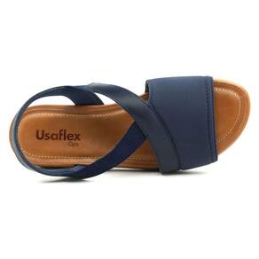 A Sandália Rasteira Usaflex Feminina Elástico Azul Marinho possui recortes em couro, e tecido com elastano na região de joanetes, que reduz a pressão e molda-se aos pés com delicadeza e maciez. Ajuste em elástico que irá facilitar o momento do calce.