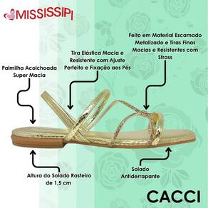 Garanta já a sua sandália rasteirinha metalizada escamada Mississipi e arrase com conforto, elegância e praticidade a cada passo.