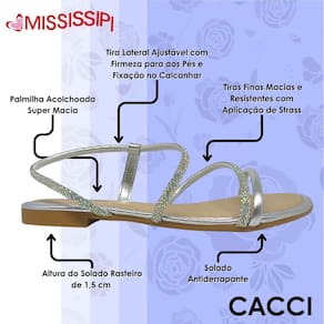 Garanta já a sua sandália rasteirinha strass Mississipi e arrase com elegância, brilho e conforto a cada passo!