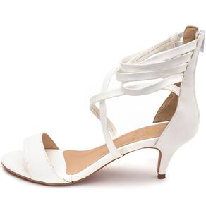 Sandália Salto Baixo Feminina Com Fecho de Zíper e Tiras Finas Transpassadas - 37 - Branco