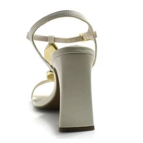 Seu salto bloco garante mais estabilidade e conforto ao caminhar, enquanto as tiras delicadas e a fivela ajustável proporcionam um ajuste seguro e elegante. O tom dourado é versátil e combina com diversas produções, desde vestidos até calças mais ajustadas.