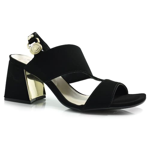 Sandália de Salto Bloco Feminina Bebecê, confeccionada em material sintético com salto bloco de 7cm, com detalhe metalizado, essa sandália é moderna, versátil e elegante, podendo ser usada para compor looks tanto durante o dia quanto durante a noite.