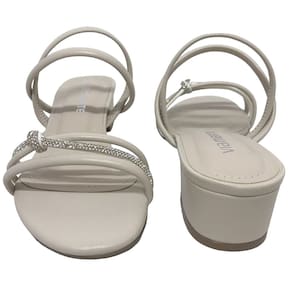 Sandália Salto Bloco Tira Strass Via Marte Casual Conforto - 38 - Bege