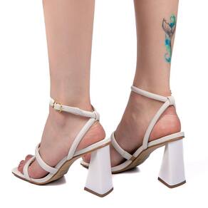 Com um salto em formato de triângulo grosso e um bico quadrado, esta sandália oferece elegância e conforto a cada passo. As tiras finas com fecho de fivela garantem um ajuste seguro e personalizado.
