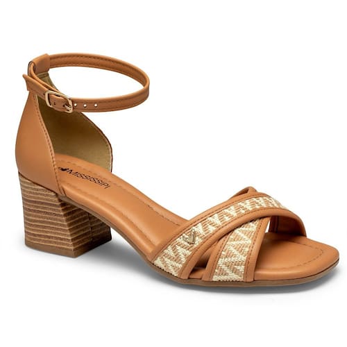 Sandália Salto Grosso Mississipi MB342 Feminina - Natural.