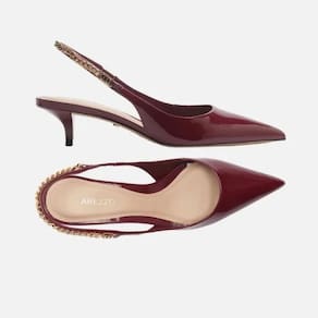 Por que apostar? O scarpin com tira slingback possui um design minimalista, vem com detalhe em corrente e acabamento glossy, expressando as tendências da temporada. Cria looks elegantes e insere sofisticação nas produções.