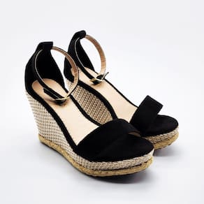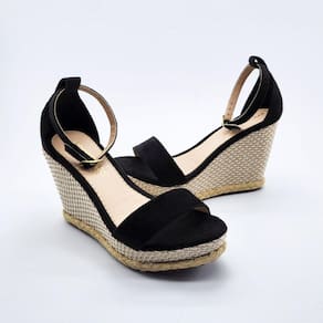 Sandália Salto Plataforma Confortável Anabela Corda FootFlex - 33 - Preto