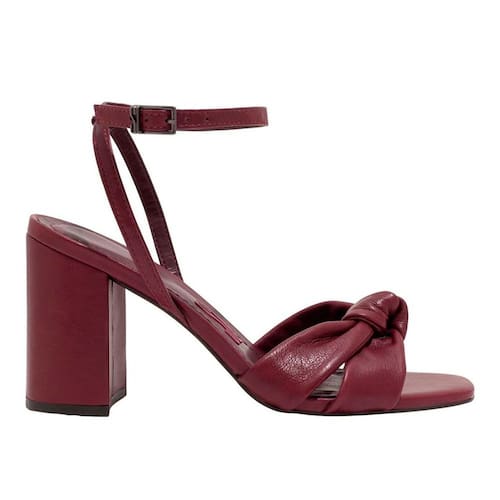 Sandália salto grosso com bico quadrado e fechamento em fivela. Seu design único, com tiras em nó, acrescenta um elemento de moda contemporânea, enquanto o salto grosso contribui para a praticidade e conforto no uso diário. Essa combinação de elementos faz desta sandália uma escolha versátil, perfeita para diversas ocasiões, onde o conforto se alia ao estilo sofisticado.