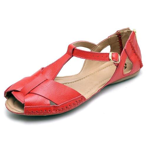 Sandalia Sapatilha Conforto Couro Feminina Ziper Traseiro e Fivela Sola Borracha - 40 - Vermelho