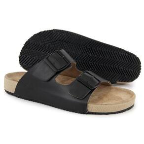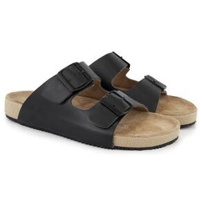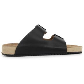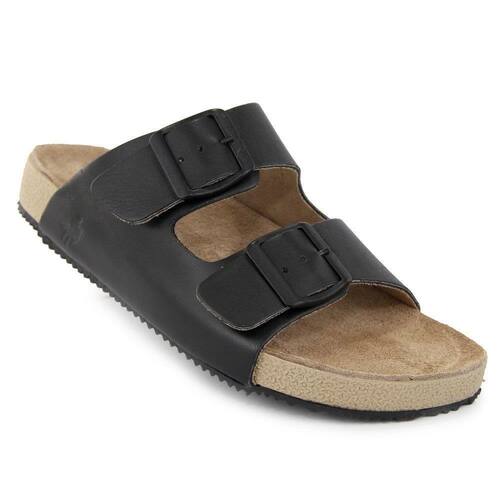 Sandália Slide Masculina Couro Fivela Lisa Leve Conforto - 37 - Preto