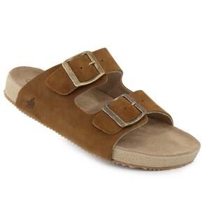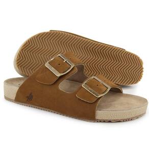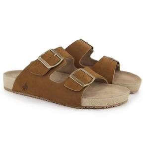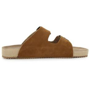 Sandália Slide Masculina Couro Fivela Lisa Leve Conforto - 36 - Marrom