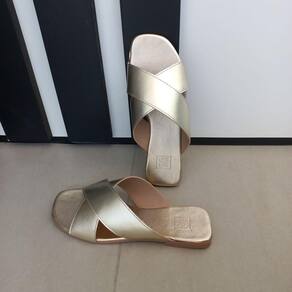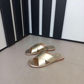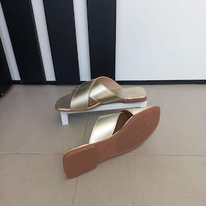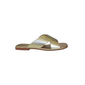 Sandália Chinelo Rasteirinha Slide Feminina tiras cruzada X dourada metalizado sola antiderrapante. Super confortável, sola super macia. Material: sintético Fabricação: nacional com etiqueta da marca. Cabedal: Bico levemente quadrado. Palmilha: PU macio com aplique do logo. Solado: Borracha antiderrapante expandida.