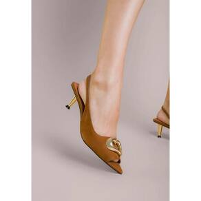 Sandália em couro clássica caramelo, com salto médio, alça ajustável que se adapta ao seu pé. Metal em formato de coração que transmite romantismo e delicadeza para compor looks incríveis!