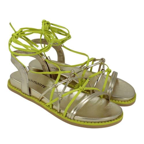 Descrição: Sandália papete Via Marte. Vem com solado flatform, palmilha anatômica e bico arredondado garantindo conforto e bem-estar. O calcanhar aberto é envolvido por duas tiras, uma que envolve o calcanhar e outra para amarração no tornozelo. Uma combinação de tiras finas entrelaçadas com nó envolvem o peito do pé. Sobre os dedos passam duas tiras finas e delicadas.