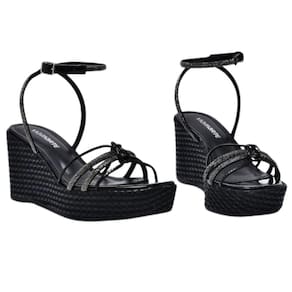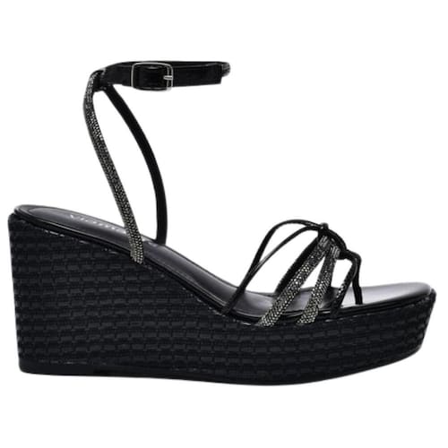 A Sandália Via Marte Salto Anabela Médio Feminina Preto possui tiras cruzadas e acabamento em strass. O fechamento em fivela oferece o ajuste ideal. O salto plataforma proporciona maior estabilidade para seus pés.