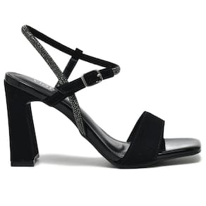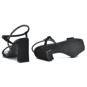 Sandália Via Marte Salto Bloco Tira Strass Bico Quadrado 23-18305 - 36 - Preto